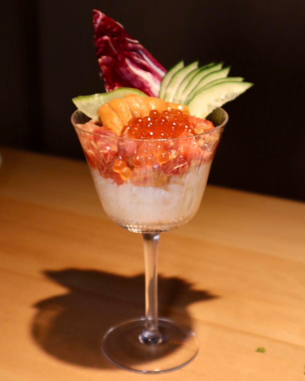 As the name implies, this martini glass is filled with sushi rice and topped with a chef’s assortment of marinated seafood, including Hokkaido uni. Not only is the presentation fun, but the actual dish was phenomenal (talk about a perfect combo).