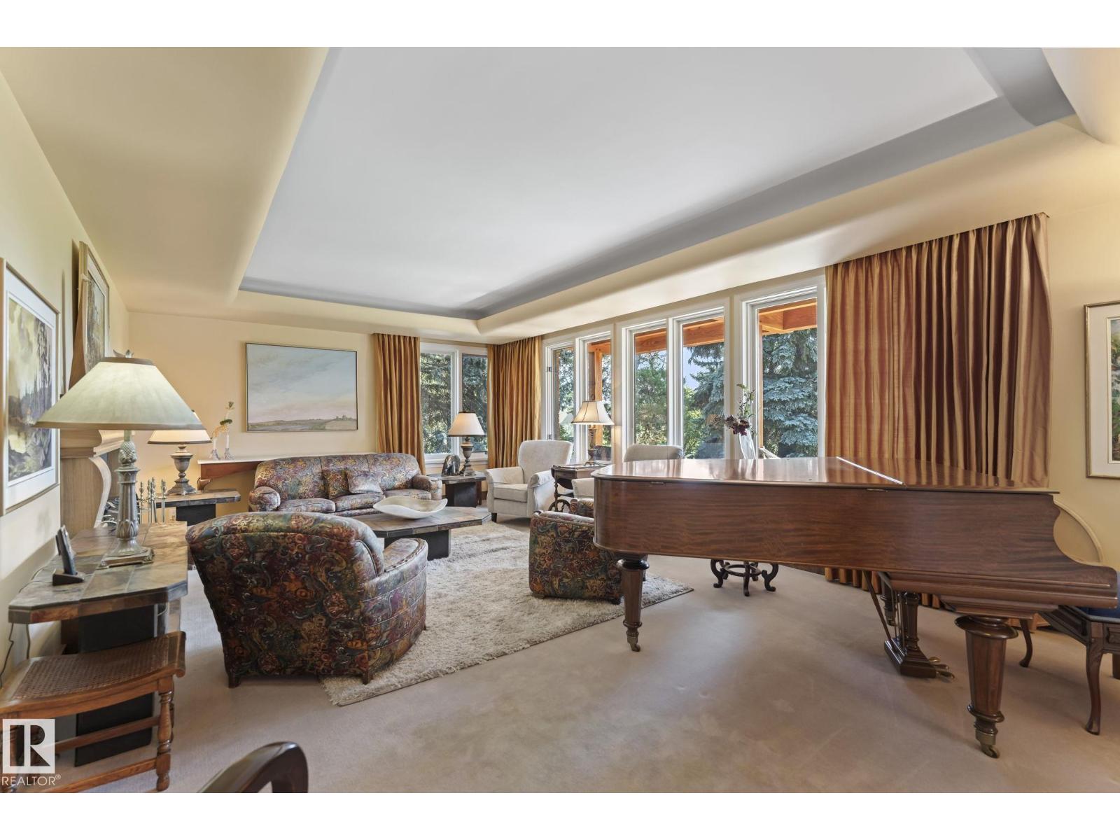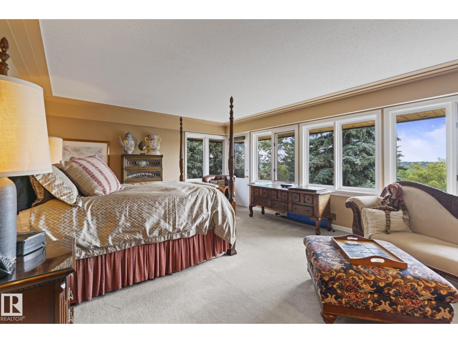 Upstairs, all five bedrooms are tucked away, including an enormous primary suite containing a six-piece ensuite, a walk-in closet, and a deck that leads to those immaculate river valley views.