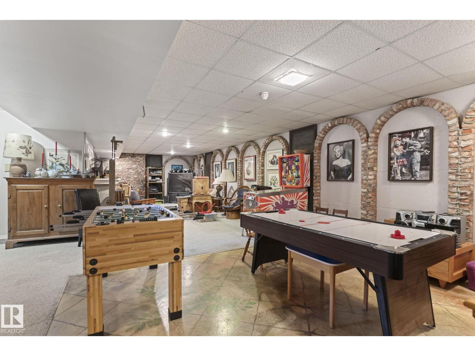 In the basement, you’ll find even more space to entertain, with a wood-burning fireplace and more than enough recreation space.